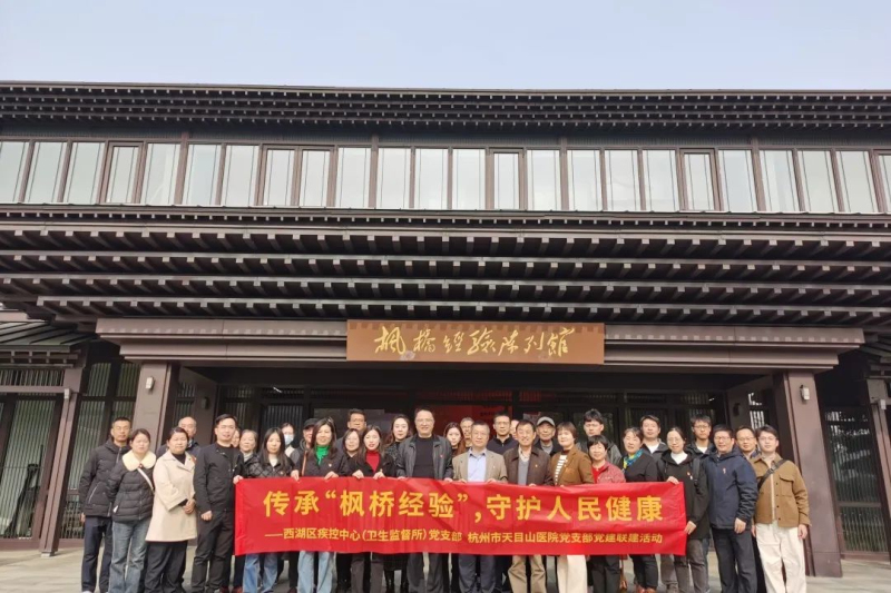 为深入贯彻党的二十届三中全会精神,全面准确地把握其核心要义与精神实质,充分发挥杭州天目山医院在医疗服务保障中的作用,寻找并明确推动高质量卫生健康发展的关键点和突破口,确保更多人民群众能够享受到更加优质便捷的医疗服务与健康管理服务,12月3日西湖疾控中心党支部携手杭州天目山医院党支部联合组织了一次意义深远的主题实践活动,我院党支部书记方磊、医保办主任俞巧云受邀参加此次活动。共同前往被誉为“枫桥经验”诞生地——诸暨市枫桥镇,开展传承“枫桥经验”,守护人民健康为主题的党建联建活动。