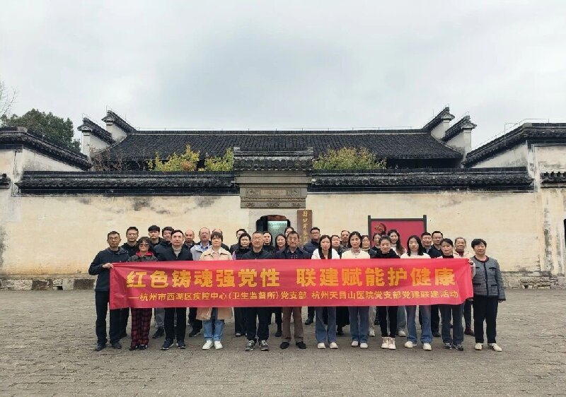 为深入传承红色基因,锤炼干部队伍过硬作风,夯实医德医风建设基础,进一步引导党员将民族自豪与历史责任融入医者初心、践行医德规范,12月2日,杭州市西湖区疾控中心(卫生监督所)党支部与杭州天目山医院党支部联合开展“红色铸魂强党性,联建赋能护健康”为主题的党建联建活动。杭州天目山医院俞巧云、方磊、刘小琳、梁小红、陈承阳院级领导干部、党员、入党积极分子、入党申请人等,积极参与本次活动。