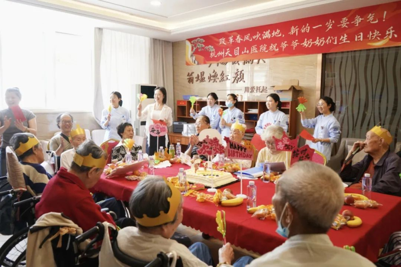 六月,莺啼婉转,绿柳垂绦,正是芒种时节,万物丰盈。杭州天目山医院康复科内,一场充满温情的月度长者集体生日会如期而至。收获的气息里浸润着别样的芬芳,而历经岁月沉淀的老人们,此刻更如明珠,在精心布置的会场中散发出柔和的光彩。时间未到,已有家属们陪伴着老寿星们早早落座,满心期待。