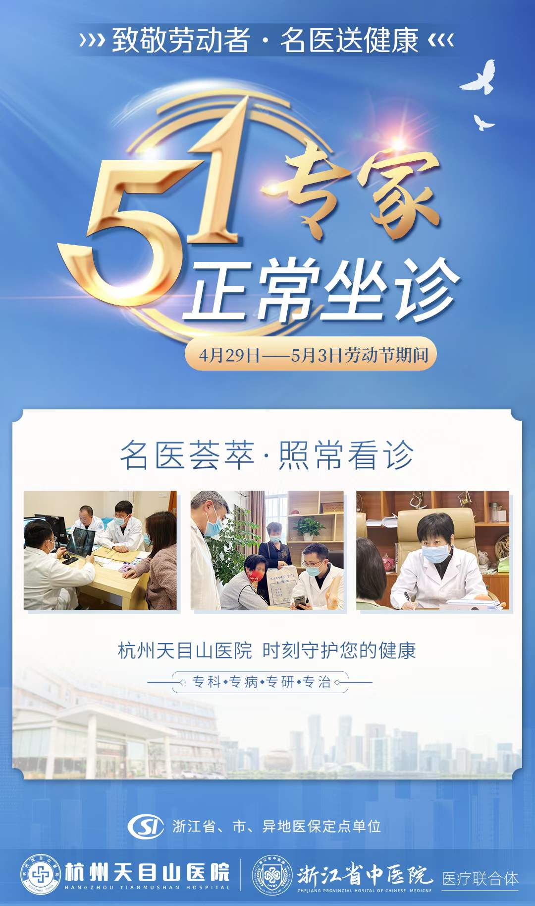 五一不放假,我院专家照常坐诊,守护您的健康!